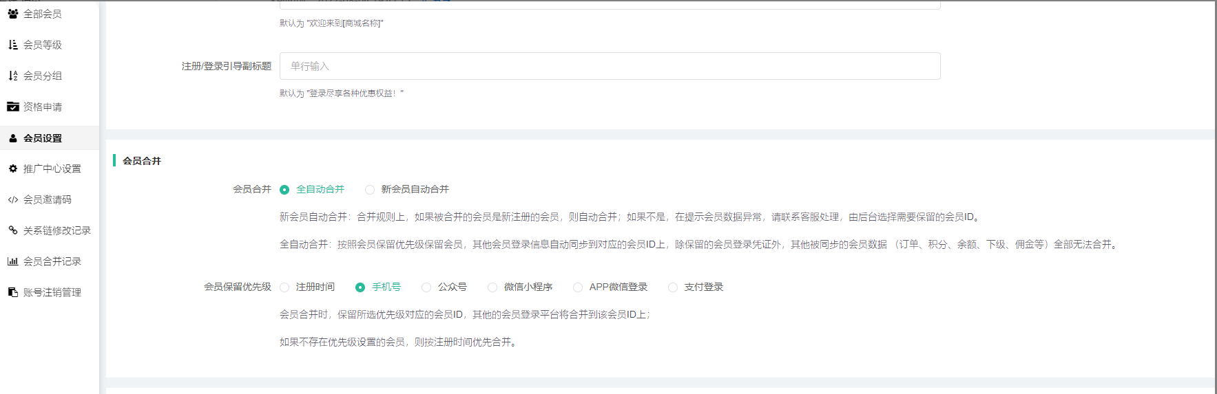 目录 搜索 展开 模王系统准备资料模王系统对接上线操作指南1、服务号的申请流程及认证2、申请小程序流程3、申请开放平台绑定小程序和公众号4、公众号对接后台流程5、小程序对接后台流程6、申请注册微信支付商户号7、支付对接操作指引8、小程序链接库9、腾讯位置服务注册10、申请移动应用11、小程序发布流程12、小程序备案13、小程序变更主体14、更新隐私协议15、关于小程序订单中心页设置的公告16、小程序接入发货管理系统17、小程序年审18.小程序对接企业微信客服19.微信提现(新接口:商家转账)20.短信资质需要准备的资料商城基础功能(系统框架)商城管理-概况商城管理-商品1,发布商品2,商品列表3,商品表单4,商品分类5,品牌管理6,配送模板7,评论管理8,优惠券管理9,商品标签10,退货地址设置11,满额优惠12、批量操作13、配送方式14、基础设置15、商品隐藏商城管理-会员1、全部会员2、会员等级3、会员分组4、资格申请5、会员设置6、推广中心设置7、会员邀请码使用记录8、关系链修改记录9、会员合并记录10、账号注销管理11、会员设置中心商城管理-订单1、订单管理列表2、订单处理流程3、订单状态4、订单修改价格5、订单退款退货(文档说明)6、多包裹发货7、批量发货订单操作步骤8、催发货订单商城管理-财务1、余额设置2、会员余额3、充值记录4、转让记录5、余额明细6、收入明细7、提现设置8、提现统计9、提现记录10、积分管理11、转账审核12、收益广告13、批量充值14、指定支付(余额充值)商城管理-系统1、商城入口2、商城设置①、商城设置②、订单设置③、物流查询④、短信阿里云短信配置腾讯云短信设置⑤、联系方式⑥、分类⑦、优惠券⑧、分享⑨、幻灯片⑩、广告位⑪、资产密码⑫、地图设置⑬、API应用⑭、邮箱配置3、交易设置4、支付方式①:微信支付②、其他支付(余额/他人代付/银行转账/货到付款)5、微信模板消息类目模板库-自定义消息通知 自定义消息模板小程序消息公众号模板消息变更公告6、语言设置7、权限管理8、多媒体管理商城管理-消息商城管理-应用商城管理-统计商城管理-装修DIY1、模板管理2、店铺页面2.1、装修增加跳转视频号2.2、增加抖音装修类型3、顶部导航4、底部导航5、DIY模板市场6、首屏广告7、图片智能设计8、基础设置应用-入口类【小程序】1、小程序基础设置运营规范2、小程序首次授权自动绑定手机号【公众号】1、自定义菜单-公众号底部导航2、自动回复3、素材管理4、粉丝管理【PC前端模板】1、基础设置2、广告管理-PC端模板1设置3、首页商品设置4、前端页面5、登录方式6、PC端模板2【子平台】【更换域名后公众号、小程序、商城等需要调整的内容】【一种万能的获取商城小程序路径的方法】【小程序客服】应用-行业类AI看舌付费内容付费文档【酒店】1、酒店基础设置2、酒店幻灯片3、酒店分类4、酒店入驻和管理5、酒店独立后台和商品6、酒店前端【门店-收银台】1、门店申请和使用步骤1.1 门店申请资料同步汇付进件2、门店管理①、门店-收银台 营销设置②、门店-收银台 分润设置3、门店分类4、门店申请5、门店审核6、门店商品7、门店商品订单8、收银台订单9、提成明细10、数据统计11、核销员12、基础设置收银台买单增加语音播报功能(会员推送)13、默认设置14、连锁店老板15、门店独立后台操作16、地图设置17、门店广告18、门店增加门店自提点功能19、门店、收银台分销 区域分红 招商分红计算示例20、门店股东21、门店余额1、门店余额插件2、门店-收银台插件-门店余额设置3、门店独立后台4、前端展示22、门店配送规则23、会员爱心值给到店主24.常见问题处理【供应商】1、供应商申请2、后台供应商插件3、供应商基础设置4、供应商前端页面显示5、供应商保单功能-可供保险行业提交保单信息使用6、供应商关联自提点【自提点】1、自提点操作说明2、自提点社区团购管理2.1 装修DIY插件增加社区团购组件3、自提点海报、自提点锁定期4、自提点消息通知5、自提点提成明细【商城自提】【上门安装】【视频点播】腾讯云上传视频流程1、【视频点播】基础设置2、幻灯片/导航管理3、添加讲师/在商品添加课程视频4、课程聚合页5、会员如何购买课件、打赏讲师6、会员如何升级等级免费观看课件7、讲师提现设置8、看课记录9、订单管理【安装服务】【活动报名】1.功能简介说明2.活动分类3.报名活动4.付费订单5.幻灯片6.基础设置7.前端活动报名操作流程【租赁】【同城配送】【店铺助手】【微社区】1、微社区基础设置2、微社区帖子分类管理3、微社区会员如何发帖4、微社区帖子管理5、微社区帖子打赏记录6、微社区帖子敏感词管理7、微社区增加心愿功能【代客下单】【支付宝配置】【分时预约】【拍卖商品】1、基础设置2、轮播图3、拍卖官列表4、拍品列表4、订单管理5、保证金记录6、拍卖记录7、拍卖官收入8、出价奖励记录9、代言费10、保证金黑名单11、禁拍名单12、拍卖前端【圈子社区】【AI智能测肤】【随叫随到服务】扫码买单【虚拟卡密】【厂家管理】【会务活动】1.会务活动管理2会务活动基础设置3.前端会务活动如何进行报名顾客档案应用-供应链类【聚合供应链】1、聚合供应链入驻流程2、聚合供应链常见问题3、聚合供应链售后解答4、