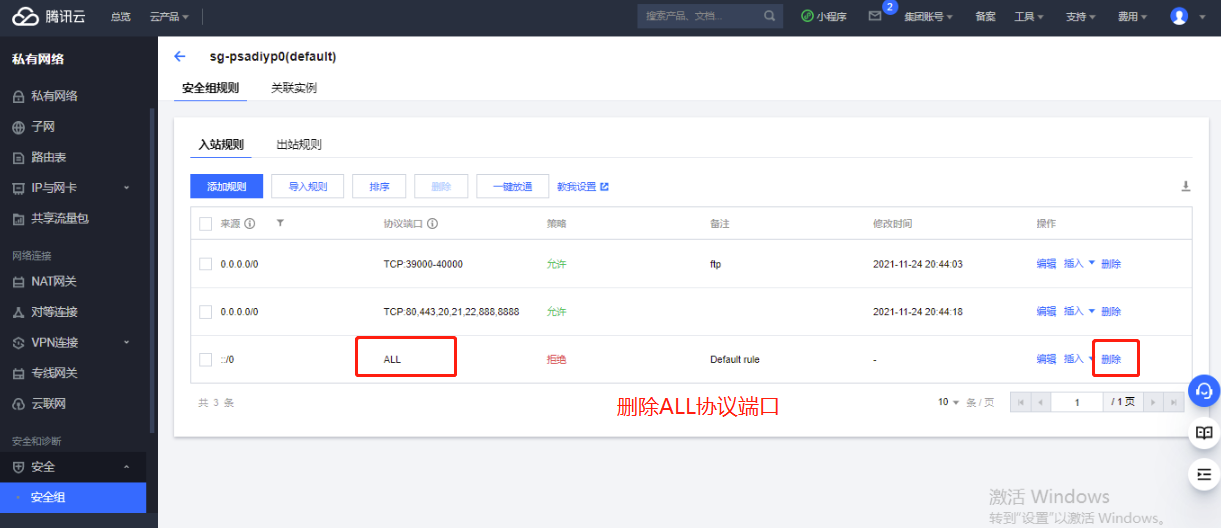 删除ALL协议端口: