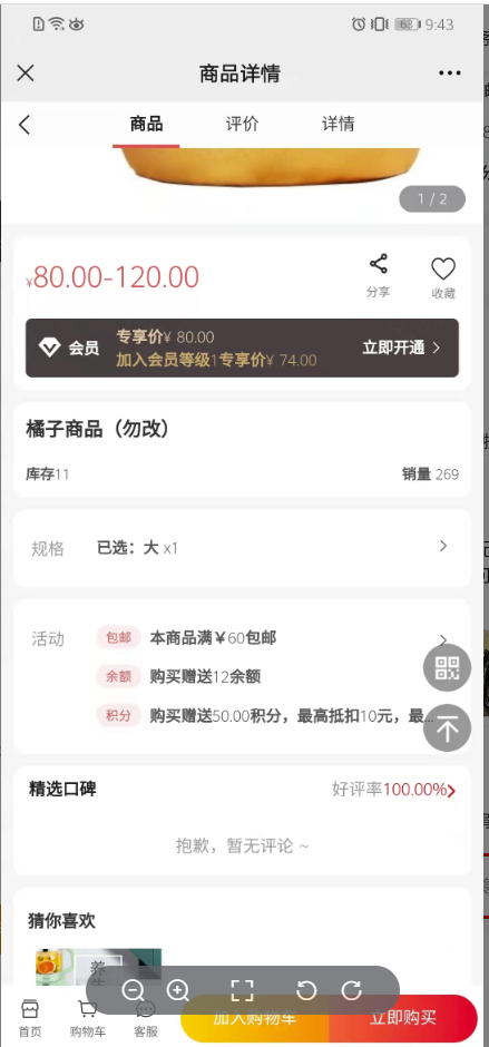 不开启显示,商品详情页不显示评论,效果如下