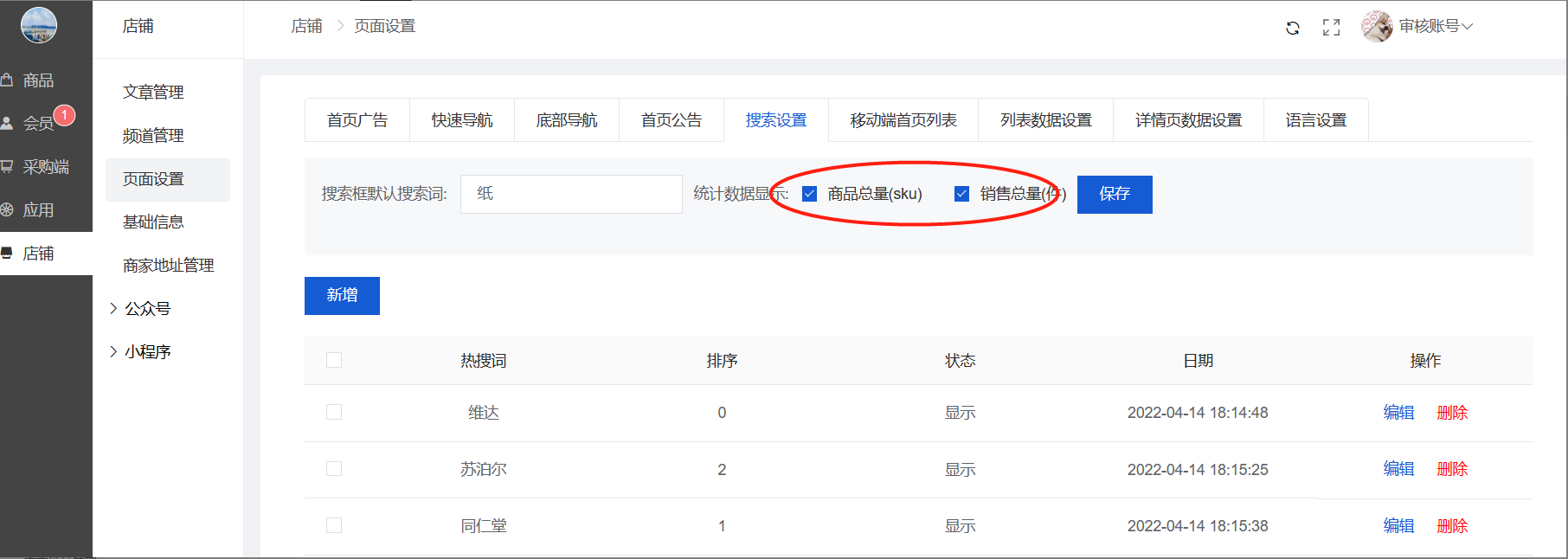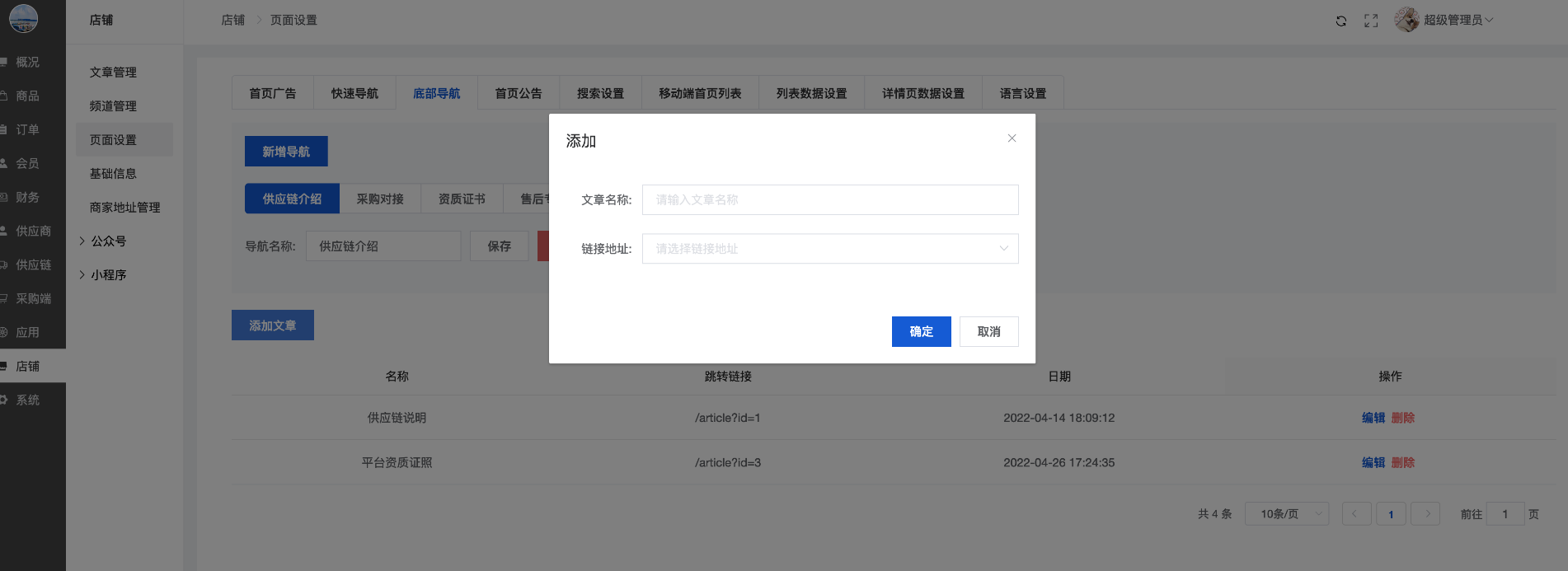 可以新增/编辑/删除采购商城顶部的导航,类似顶部导航,如图