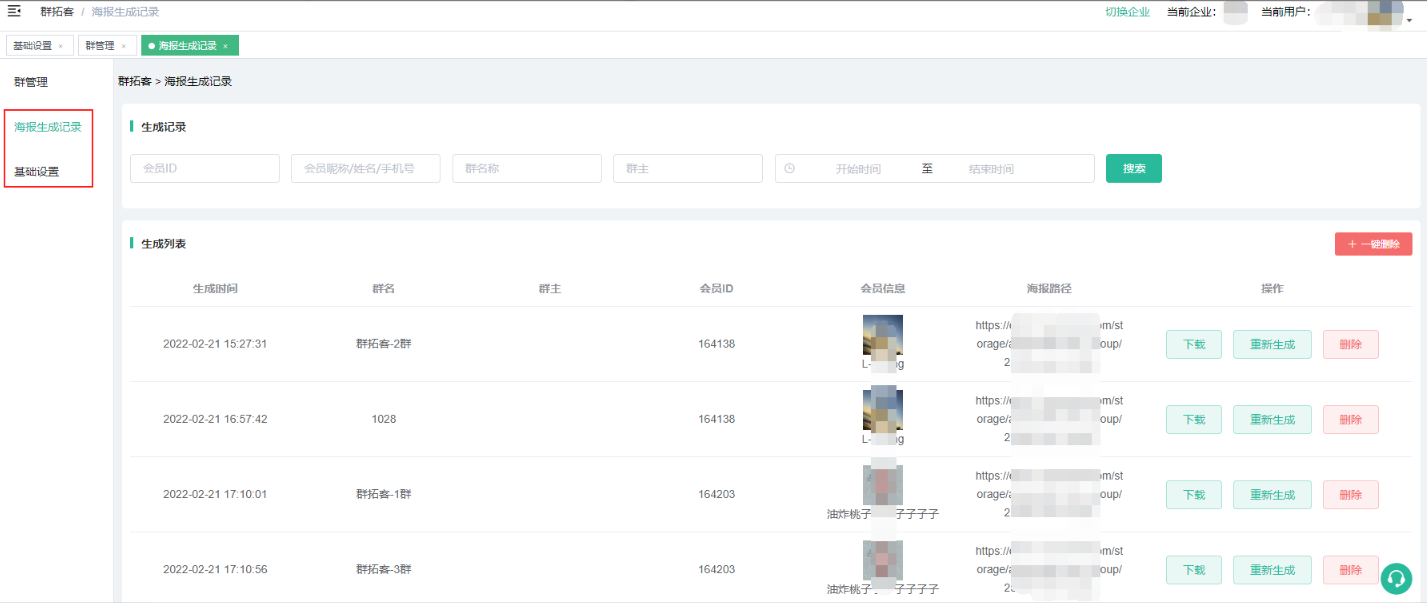 1、会员中心—群拓客—企业员工