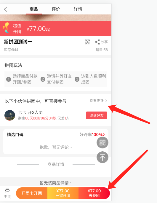 2, 在活动详情页可选择开团/参团