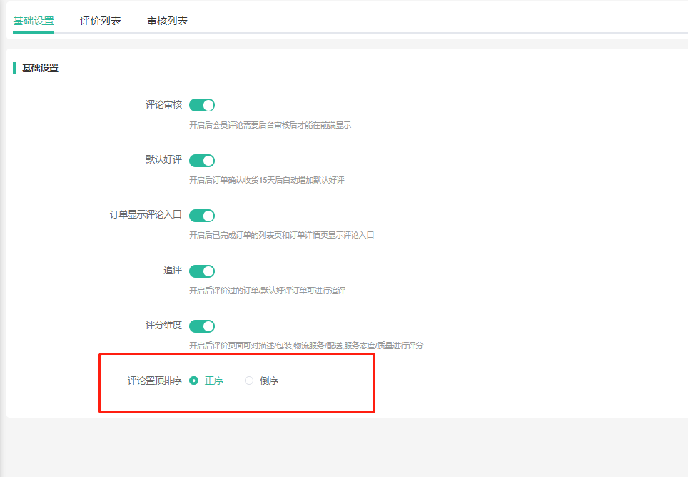 正序置顶评论:按照评价时间先后显示